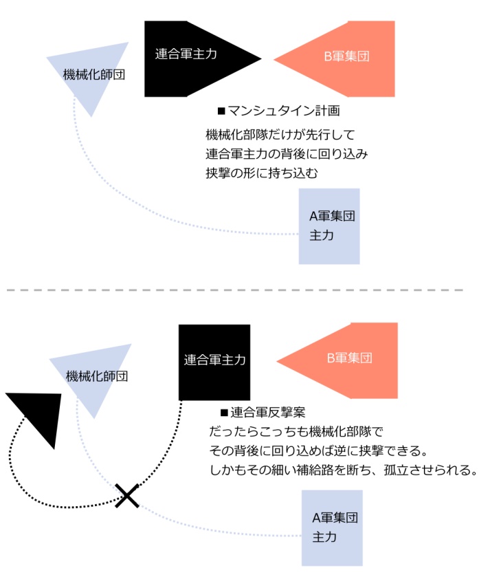 まずは基本の部分の確認から。マンシュタイン&グデーリアンの銀河史上最強頭脳コンビが考えた作戦は単純明快なものでした。