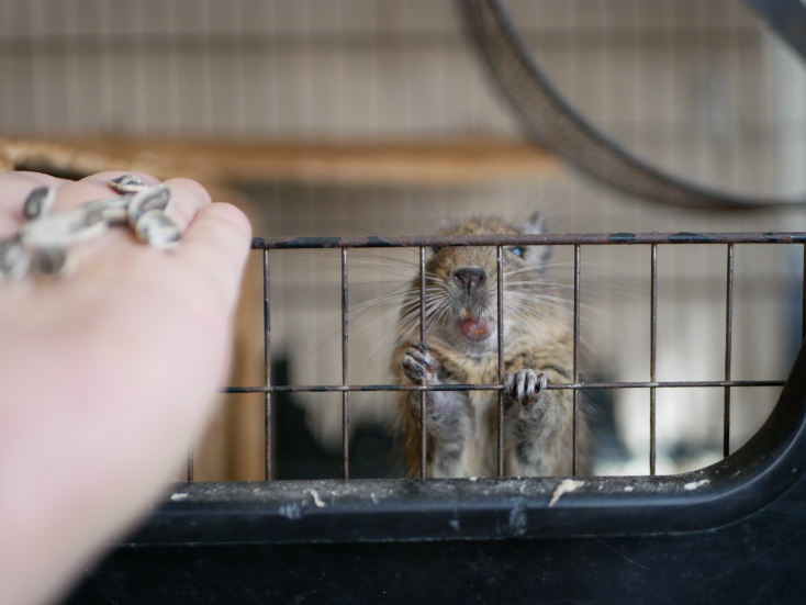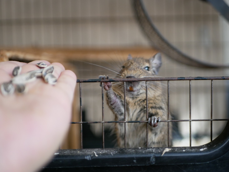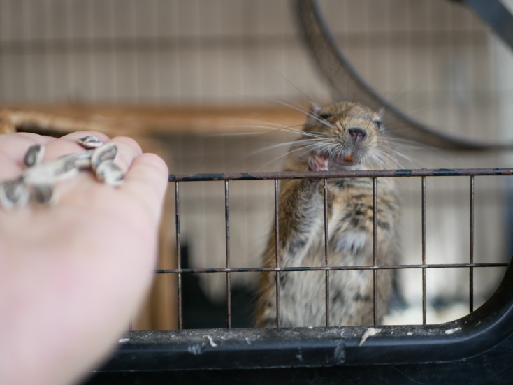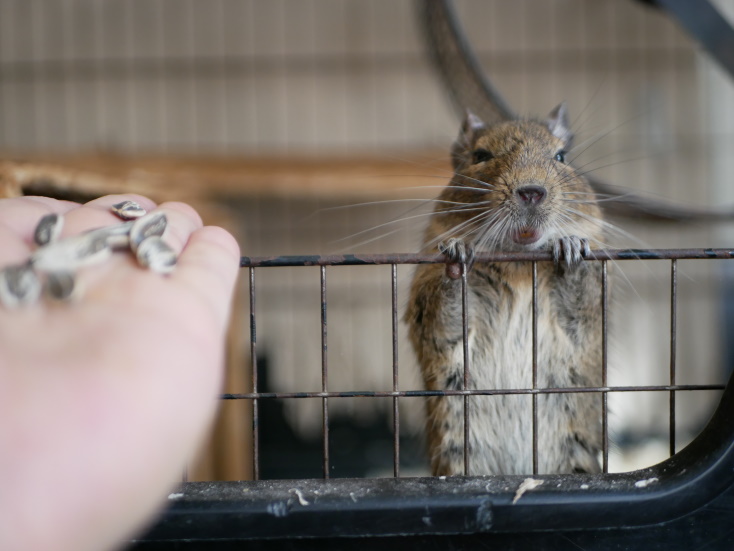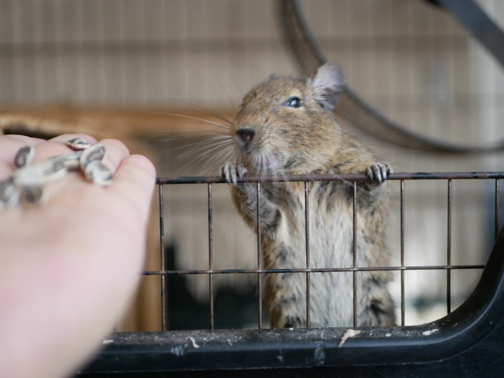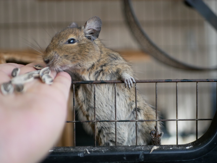 お次はトクさん。オヤツのヒマ種をもらうとお気に入りの場所まで持ち去ってから食べる子なのですが、再度貰いに来た時、目測を誤って変な場所からヒョイと顔を出す事があります。かわいい。 「さあ、次のヒマ種をいただくですよ」 「ゲッシッシ、げっ歯目ですよ」 「…あれ?」 「あ、こっちか」 「気の利かない飼い主ですね。さっさと寄こすですよ」