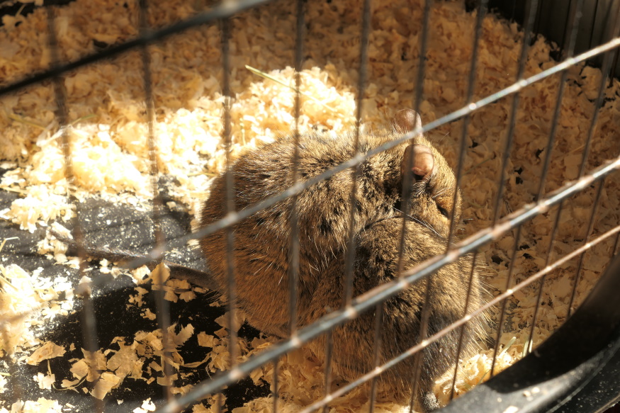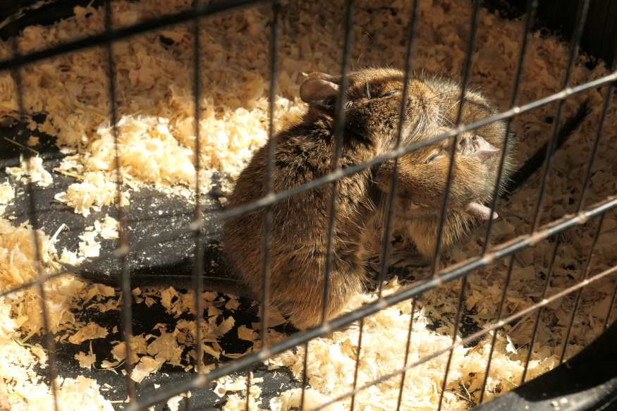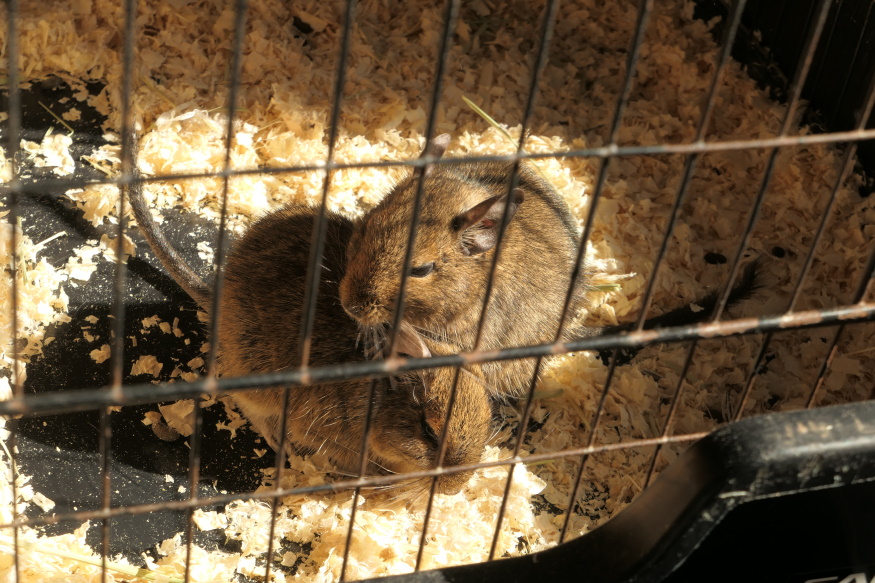 とにかく活動派なトクさん、日向ぼっこでもじっとしてません。これ、上が木曜、下がトクさんでデグー団子日向ぼっこ中だったんですが… ごそごそ動き回っていつの間にか飼い主にケツ向けている態勢に。ぽかぽかで眠たい木曜はウトウトしてるんですがお構いなし。 そして突然始まる毛づくろい。親愛表現なんですが、眠い木曜は迷惑そう。 そしていつの間にか上下位置が逆転している。この間、木曜はされるがままでした。