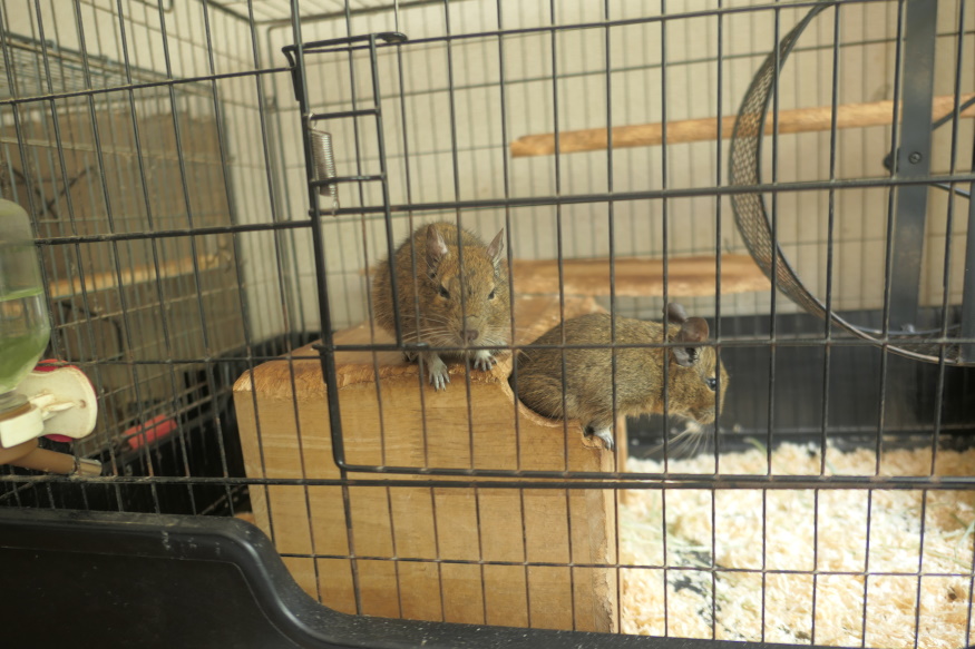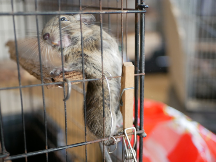 トクさんは見ているだけで、ここから出入りする事はほぼ無いですね。まあこの穴のおかげで巣箱の中でデグーが何しているか観察が可能になり、夕撃旅団におけるデグー研究が一気に進化したのですが。