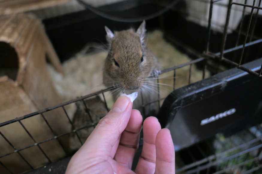 食べ物、食べれる物はなんでも大好きなのがデグーですが、我が家で最も個体差が出たのが桜の花びらでした。毎年、木曜は熱心に食べるのですが、同室のトクさんは見てるだけ。
