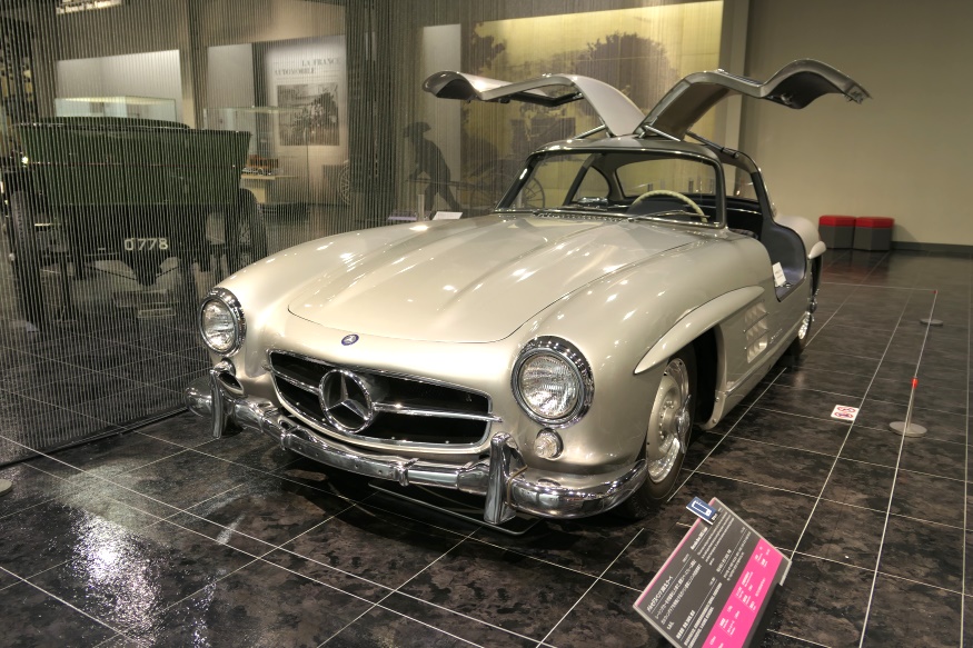 ![]() メルセデス・ベンツ 300SL クーペ(Mercedes-Benz 300SL Coupe)、1955年型。ダイムラー・ベンツ社(現メルセデス・ベンツグループ)の車体コードだとW198型。 後のベンツSLシリーズの始祖となった車で、世界で最初にキャブレターを捨て、ガソリン直噴エンジンを搭載した車でもあります。第二次大戦期におけるダイムラー・ベンツの航空機エンジン、DB600系エンジンのガソリン直噴技術の歴史を考えるとちょっと感慨深い部分がありますね、この辺り。ちなみに直列6気筒、3000ccエンジンで215psという高性能なものでした。 余談ながらSLシリーズのSL、ドイツ語の超軽量、Super Leichtの略ですが、昔はSport Leicht、軽量スポーツの略だとされてました。なんで変わったの?と思って調べて見たら、2017年に古い社内資料で前者が正しいとする記述が発見されたらしいのです。ただし詳細は不明。 個人的にこれぞGTカーと思っている車の一つで、その異様なガルウィングドアも含めて美しい車だなあ、と思います。ベンツは自分に自信がない、ダサいオッさんが金の力でイキッて乗る車、という印象しか無いんですが、これとSLRマクラーレンだけは美しいと思いますね。ただしこのガルウィング・ドアは製造が大変だったようで、1957年からはオープンカー、いわゆるロードスター型に変更されてしまいます(こちらは1963年で生産中止。ちなみに同時に発売されていたより安価なオープンスポーツカー、190SLロードスターの人気がアメリカでは高く、それに合わせた説もあり)。このロードスター型は構造設計から異なった部分が多く、正直、カッコ悪いので個人的には初代300SLとは別物だと思っております(一部で有名なF-86D戦闘機と一緒に写っている宣伝写真はロードスターの方でいろんな意味でカッコ悪い)。 このクーペ型の300SLは1400台の製造のみに留まり(ただし後期型のロードスター型も1858台だけだが)、これまたよく手に入れたな、という車の一つです。ただしこれまた現存数は多く、確認されているだけで1000台以上が生き残っていると見られていますから、これも熱烈なオーナーが多かったのでしょう。 ちなみにダイムラー・ベンツ社の高級販売ブランドがメルセデス・ベンツとなります(現在はダイムラー・ベンツの名は消えメルセデス・ベンツグループになってしまったが)。トヨタのレクサスみたいなもんですね。極初期(1899年ごろ)のディーラーの一人がダイムラーという名がダサくて売れないとして使用していた名称がメルセデスだったのです。ちなみにそのディーラーの娘の名前で、すなわち女性名でした。これがウケたらしく、ダイムラー・ベンツが正式に商標として取得、ダサいダイムラーの名を外して販売するようになったのでした。 まあ、日本語だと花子・トヨタ、貞子・ホンダといった名称、より正確に言えばちょっとゲルマン系らしからぬ名なので、豊田万梨亜、本田樹里みたいな感じのブランド名です。正気かね君たちと思いますけどね。 ![]() うーん、カッコいい。将来、アンドロ梅田星人が地球に攻めてきた場合、地球防衛軍の戦闘用車両として、これとマツダの初代コスモスポーツのコンビしかあるまい、と長年考えております。負ける気がしねえ。 この車の開発についてはいろんな「伝説」があり過ぎてややこしいのですが、ざっと見て置きましょう。まずは、このガルウィングとならざるを得ない車体構造、ドアの場所なんて無い、剛性優先でガッチリ組まれた鋼管フレームのボディを持つ車がありました。それがダイムラー・ベンツ社による戦後初のレース用車、300SLプロトタイプ、車体コードW194型でした。これが1952年に開発され、レースに投入されると同年のル・マン24時間でワンツーフィニッシュを決め、他のレースでも圧倒的な成績を残します。 これに注目したのがアメリカでメルセデス・ベンツのディーラーをやっていたホフマン(Hoffman)という人物でした。彼がこのレーシングカー、300SLを市販車に落とし込んで販売する事を提案します。アメリカを重要な市場と見ていた同社がこれを受け入れる形で、市販型の300SL、車体コードW198が誕生する事になったのでした。当然、市販車の中身は大幅に造り変えらていますが、300SLの名はそのまま引き継いだのです。 このため、そのデビューは1954年のニューヨーク モーターショーの会場が選ばれ、さらに生産された300SLの内、かなりの数がアメリカに送られたようです(初期発注で1000台、最終的に生産数の80%がアメリカで売られたと言われている)。 なので300SLの名を持つレーシングカーと量産車があるんですが、事実上、別の車ですから要注意。メルセデスベンツ車体コードではレーシングカーがW194、量産車がW198と明確に区分されているのですけども。ちなみにレーシングカーの方を300SLプロトタイプと呼ぶこともあるようです。プロトタイプ(原型)では無いと思うんですけどね。 ![]() 後ろから見てもカッコいい。1950年代の狂気のアメ車のデザインの中でこれが1000台以