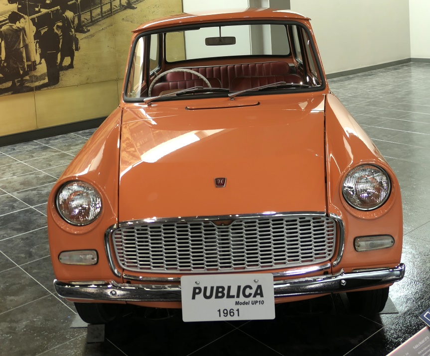 ![]() トヨタが初めて発売した大衆車、パブリカ。展示車は1961年型、発売初年度の車です。ちなみにバックミラーは失われたのではなく、最初から付いてませんでした。すなわち仕様です。 ちなみにナンバープレート見れば判りますが「プ」ではなく「ブ」です。白状すると筆者は長らくピーマンみたいな名前の車だと思っていました。ごめんさい、もうしません。ちなみにエンジンは空冷水平対向2気筒、697tで、トヨタが市販した中では恐らく最小排気量では(後にトヨタスポーツ800に搭載された時は790ccに拡大されている)。ちなみにこれも前輪はダブルウィッシュボーン サスペンションとされ(ただしトーションバー)、そして後輪駆動。この時代のトヨタ、ホントにこの構造が好きですね。 発売当初の価格は38.9万円で、軽自動車より安い衝撃的な価格でした。ただしそのためのコスト削減が行きすぎた、という面が強く、あまりに貧相で売れなかったとされます。後に1963年からデラックスと銘打ったグレードが追加されるのはその辺りのテコ入れでしょう。ちなみに一部で大気人気のヨタハチことトヨタスポーツ800は当初、パブリカスポーツ800の名で発表されており、実際デラックスグレードのパブリカと多くの共通部品を利用していました(シャシ―はモノコック構造に置き換えられ別物)。 ![]() 実車を見るのは初めてですが、悪くは無いけど買わないよね、という車だなあ、とは思いまする。 ちなみにパブリカの名は例によって公募によるとされますが、まあ嘘でしょう。ついでにトヨタのサイトによると「Public car」の略で国民から愛される車、との事ですが、いやそういう意味にはならんでしょう。そこら辺に置いてあって、誰もが好き勝手に乗れる車、といった意味合いになりませんか、「Public car」。恐らく国民車、フォルクスワーゲン的な意味を狙ったんでしょうが、それならPeople's car、略してピカピカでいいんじゃないですか。 ![]() ちなみに1955(昭和30)年に通産省が国民車構想の計画なるものを、恐らく意図的に新聞社にリークしました。まあ、最後までそんなものは実在しませんでしたし、その内容もドラえもんが居たら便利だから誰かドラえもん造れ的な狂気の内容で意味が無いものでした。この時代の日本車の説明には頻繁にこの国民車構想の話が出て来ますが、それほどの影響はなかったと思いますよ。 この車もそれと絡んで説明される事が多いですが、トヨタ側の資料を見る限り、この点はほとんど考慮してないでしょう。 といった感じで、今回はここまで。 |