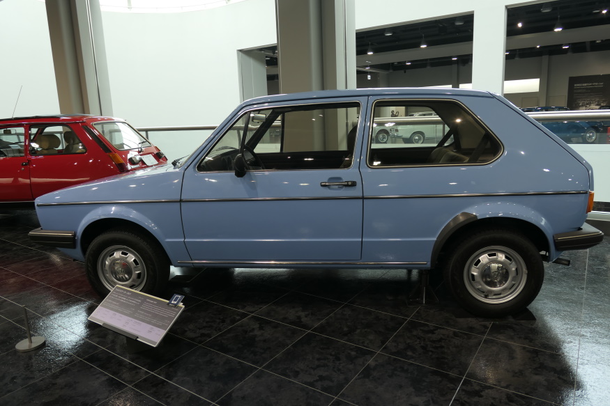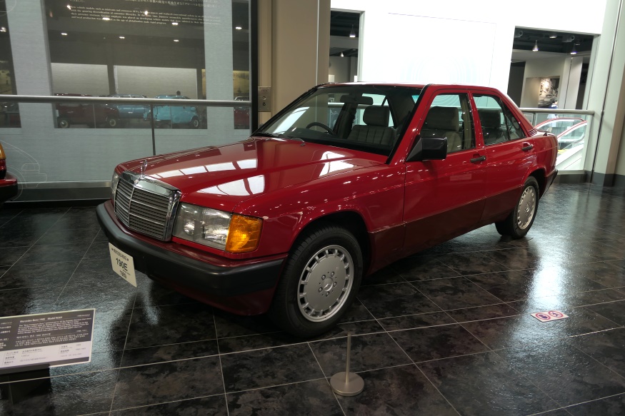 ![]() ある意味でビートルよりも偉大かもしれないフォルクスワーゲン社のゴルフ。実際、既に生産台数ではType1を抜いています。ちなみにフォルクスワーゲン社内の開発番号はType17。 展示の車両はの1979年型との事。1974年に販売開始なので、妙に時間が経ってからの車両。ゴルフならまだ探せば初期形あると思うんですが、欧州車には微妙に淡白なのがこの博物館の特徴か。ちなみに余談ですがこの博物館、西ドイツ時代の車も全てドイツ製にしています。現ドイツは西ドイツが東ドイツを吸収して真ドイツことドイツ共和国連邦(Lotus EliteBundesrepublik Deutschland)として完成形になった、という建前なので正しいと言えば正しいんだけど、違和感はあるなあ。 ついでにさらに余談ですがナンバープレートの表記、全部大文字でGOLFになってますが、これは初代の車体に付いてるロゴそのまんまの表記です。二代目からGolfになります。変な所でマニアックだな。 今見ても古臭くないデザインはジウジ・アーロによるもので(それ以前からフォルクスワーゲンとは仕事をしていた。ちなみにイタリア人デザイナーとドイツ自動車会社の共同開発はBMWとミケロッティが先にやっている)、ドイツ人が突然オシャレになった結果ではありませぬ(ジウジ・アーロ案では四角いヘッドライトだったらしいが)。ただし1970年代のドイツ車は基本的にカッコいいものが多く、ポルシェ928、924、930などは自動車のカッコよさに置ける一つの頂点だろうと筆者は思っております。 前置きエンジン前輪駆動、そしてハッチバック式なのは先行したルノー5の大ヒットの影響だと思いますが、車内空間の広さはこっちが上で大人が4人しっかり乗れる小型大衆車、という方向性の元祖でしょう。 ちなみにゴルフの名の由来をフォルクスワーゲン社は公表していないんですが、当時、同社の車の名は「風」に拘っておりました。シロッコ、サンタナは極地風、ジェッタはジェット気流、ヴェントはイタリア語で風です。そしてゴルフは当初、ブリザード、あるいはカリブの名で呼ばれておりました。前者は言うまでも無く風を伴う気象現象であり、カリブ海は大西洋横断のための貿易風の本場です。そこからゴルフならばGolfstrom、これも大西洋横断の鍵、 メキシコ湾流のドイツ語呼称から取ったと思われます。これで再度アメリカに乗り込んでドンガバチョと儲けたる、という名でしょう。Golfだけだと単に湾の意味ですが、Golfstromでは長すぎるのでゴルフではないかと。少なくともいい歳した大人が地面の穴に球を入れるのに馬鹿騒ぎをする、という意味の名では無いでしょう。 ![]() 近代的な自家用車の始祖である、という設計ですね。歴史に残る車だと思います。ちなみに当時のフォルクスワーゲンは主力のビートルがすでに旧式化し、さらに他の車も全く売れずで経営危機の真只中にありました。それを一気に生き返らせてしまったのがこの車でした。 さらにゴルフMk.1 GTIが1976年夏にデビュー、これが大ヒットになります。ハッチバックの大衆車にちょっといいエンジン積んで、ちょっと速い車にする事で差別化したいわゆるホットハッチ車、その源流の一つとなります(ただしホットハッチ/Hot hatchという用語が登場して来るのは1980年代に入ってからだが)。初代のGTIは直噴式1600ccエンジン(当時のゴルフに搭載された中では最大)を搭載、前輪のディスクブレーキを一枚のソリッドから二枚のベンチレーテッドに変更、車内に剛性強化用のロールバーが入っていました。当初は5000台限定で売り出されたのですが、最終的に初代モデルは1983年までに46万2千台を売る大ヒット車となります。日本には正規輸入されなかったのでほとんど知られていませんが、歴史を造ったモデルなのです。 ホットハッチ系の元祖は同年3月発売のルノー5のアルピーヌですが、僅か数カ月差の同世代ですから、これもその手の車の始祖と見て良いでしょう。以後、同じような車種が次々と誕生する事になります。ただし性能的にはライバルと言っていい両車ですが、価格はゴルフの方が2割近く安く(販売時の価格がイギリスではゴルフGTI 3600ポンド、対してルノー5 ゴルディニ(アルピーヌのイギリス名) 4200ポンド)、このためかルノー5アルピーヌは1981年までに5万6千台しか売れず、販売成績ではゴルフの圧勝でした。 まあどちらも歴史に名を残すべき車だと思いますけどね。 ![]() メレセデス・ベンツ 190E W201型、1989年型。190Eも1982年から発売なので、これまた展示車両は発売から大分経ってからのものですね。ちなみに社内形式番号がW201、エンジンも2000ccなのに(ベンツ社は難しいことを考える事が苦手なのでエンジン排気量の数字から名を撮るのが通常)製品名が190なのは既に別の車が200を使っていたからです。最後のEはガソリンエンジン車で、ドイツ人大好きディーゼルエンジン搭載車はDとなります。…なんでガソリンエンジンがEなんだ? 当時のベンツとしては最小の車で、1985年に日本でも販売が開