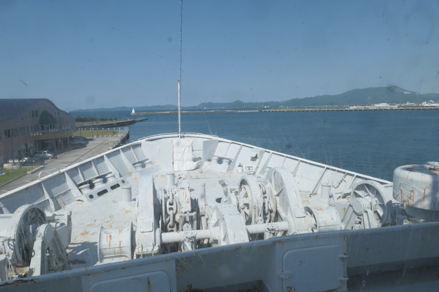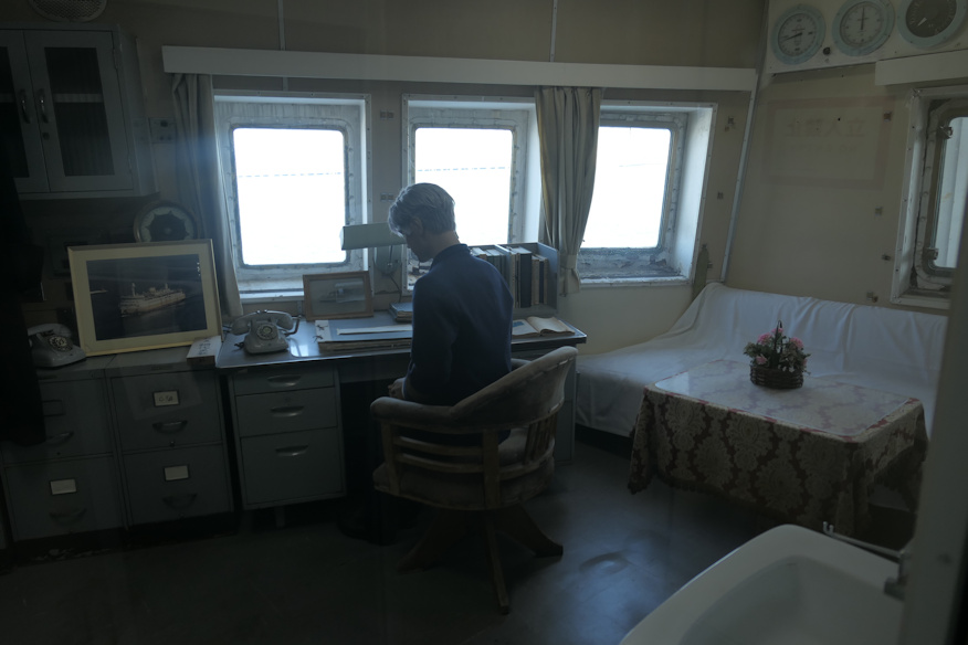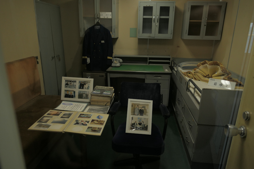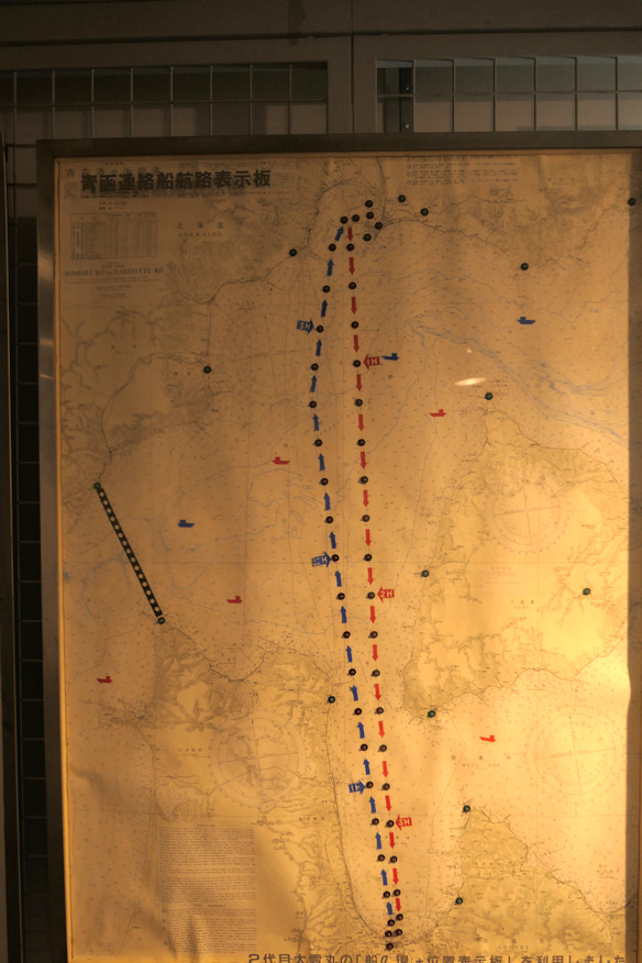![]() その先は船長室でした。こんな場所にあったのね。この直ぐ上が艦橋なので便利ではあったのでしょうが、一般の乗客区画と区別されてないんだ。 ![]() その横にあった謎の部屋。貸し会議室みたいなものか、あるいは船員さんの会議室なのか。 ![]() こちらは事務長室。ダイヤル電話がいい味出しています。船長室の横にある、という事はそれなりにエライ人だったんでしょうか。ここの衣装も寄贈品でした。ついでにベッドがあるのにも驚く。繰り返しますが4時間ほどの航海であり、どこで寝るのという気も。停泊中も下船せずここに居たんですかね。 ![]() その先には窓があり、外が見れました。となるとこの上が艦橋ですな。 ![]() 横にあった階段から最上階である4階へ。現在は客室区画からあっさり階段で入れちゃったんですが、さすがに往時には階段に扉等があったと思われます。ちなみに左側にはエレベータがあり、これで車両甲板と機関区まで一気に降りれる構造です。カッコいいぜ。 ![]() そこにあった航路図。運行当時のものらしいです。気持ちいいまでの直線航路ですね。左の黒線が青函トンネル。でもってこれ左側航行してるじゃん。青函連絡船、世界標準の右側航路のすれ違いでは無いんですね。気になって帰宅後に理由を確認してみたのですが、どうも皆さん適当な事言ってるだけな感じで、正確な理由は良く判らず。 |