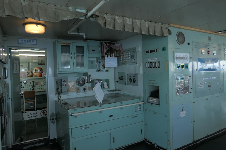 ![]() 艦橋からの景色。意外に普通の窓ですね。そしてさすが4階、メチャクチャいい眺めです。 ![]() おお、高価なジャイロコンパスがキチンと残されていました。思ったより小型。1964年就役の段階で、専用ジャイロ室無しの小型装置があったのか、それとも後付けなのか。まあ津軽海峡の横断だけですから、そこまで精密である必要もないのでしょうが。 ![]() レーダー関係も全部残っている。愛してます。制御レーダーというのは初めて見ましたが、高周波の近距離用高解像レーダーですかね。 ![]() 艦橋後部には海図台と思われるものと、神棚が。左のドアの奥は無線室です。なぜか両目の入ったダルマが二体ありました。 ![]() そして操舵室の後部から屋上甲板に出るドアが。おお、これは出るでしょう人として…という感じで、今回の本編はここまで。 |