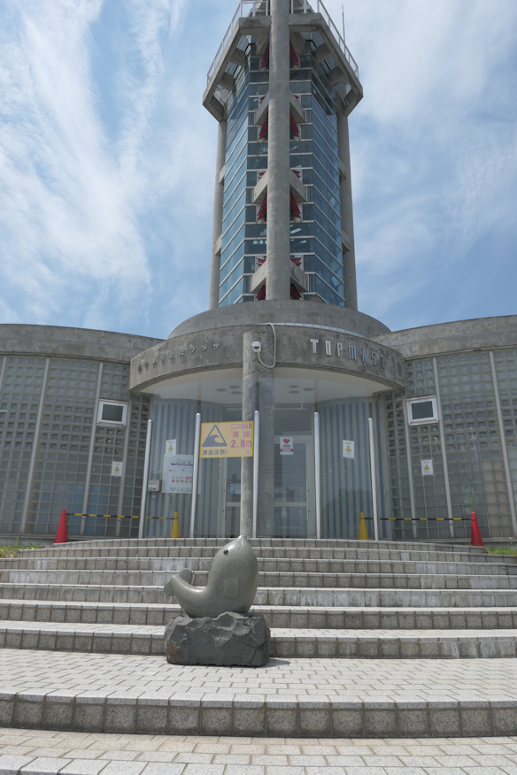 ![]() 結局、以後はイルカ軍団との接触はないまま、我再び津軽半島に帰還しつつあり。この辺りから青空が広がり始め、波も無い五月末の陸奥湾の上はとてもいい気分ザンス。 ![]() どんどん近づく下北半島。低山ではありますが、ここも山がちな地形です。 ![]() そして再びこんにちは、蟹田港。堤防の上には釣りをしている人が見えました。 ![]() そしてさらば「かもしか」号。君との船旅はなかなか楽しかったです。 ![]() ツーリングで来たらしきバイクが一台、ポツンと停まって居ました…って、あれBMWの大型じゃん。車輪が二個しか付いて無いのに、200万とかするヤツじゃん。ちょっと不用心じゃないか、家の中で大事に乗るのが一番なんじゃないかとか思う。きっと余計なお世話だと思う。 ![]() さて、では三度の飯より高い所が好きな筆者が気になって仕方なかったこの塔に登ってみましょう。 入り口の左上に「風のまち交流プラザ」、右上には「TOPMAST」の字があり、ああここは青森なのだな、ともはやと冷静に受け止める。そして手前のイルカらしき像に説明がなく、正体不明。帰宅後に確認したら1996年完成との事で、ああ、なんかそうだろうな、と思う。ただし建物そのものはメッチャ素敵でした。 ちなみに英語のPlazaは原義としては広場であり、そこから地上に広く展開する商業施設を指す言葉となりました。極東の島国ではなぜか「交流の場」的な意味で使われますが、少なくともこんな塔をプラザと呼ぶのはどうなのよと思う。全土にシティーホール(City hall/市役所、行政局)を名乗る葬儀場がある国ですから、文句を言っても仕方ないんでしょうが。ついでに新ヨーク市のプラザホテルは広場横のホテル、という意味であり、東京にある京王プラザホテルって何が言いたいんでしょうね、あれ。 |