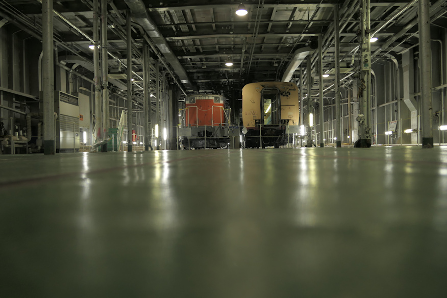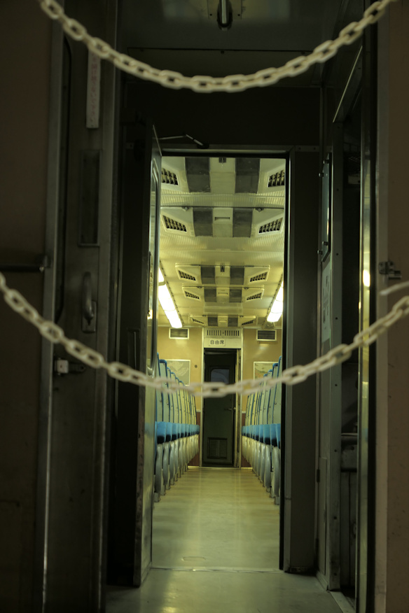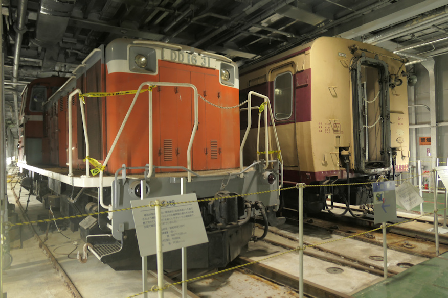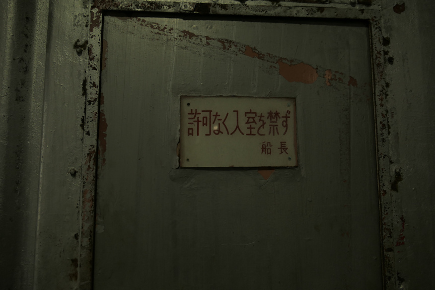 ![]() その横にある部屋のドアの入り口に貼られていた船長からのメッセージ。おそらく現役時代からのものでしょう。 ただし図面を見ると本来、艦尾に部屋は無いはず。後から造られたもので、船長がここまで警戒すると言う事は何か恥ずかしい秘密が隠されていたかと思われますが、今となっては全て謎です。 ![]() いやもう、チビっちゃいそうな大感動。こなったらオジサン、ちょっと狙った構図の写真なんかも撮っちゃうぞ。 ![]() DD16ディーゼル機関車も左右の固定レールにワイアで繋がれているのが見て取れます。ちなみに解説板によるとDD16の重量は48トンだそうで、満載重量のゼロ戦より重いじゃん。F4Uでも乾燥重量なら同じくらいじゃん。もう空母にしちゃおうぜ、この船。 ![]() キハ82の車内。中は入れないのですが、雨ざらしではない理想的な保存なのでとてもキレイ。このまま大事にしてもらえるといいね。