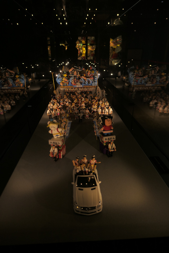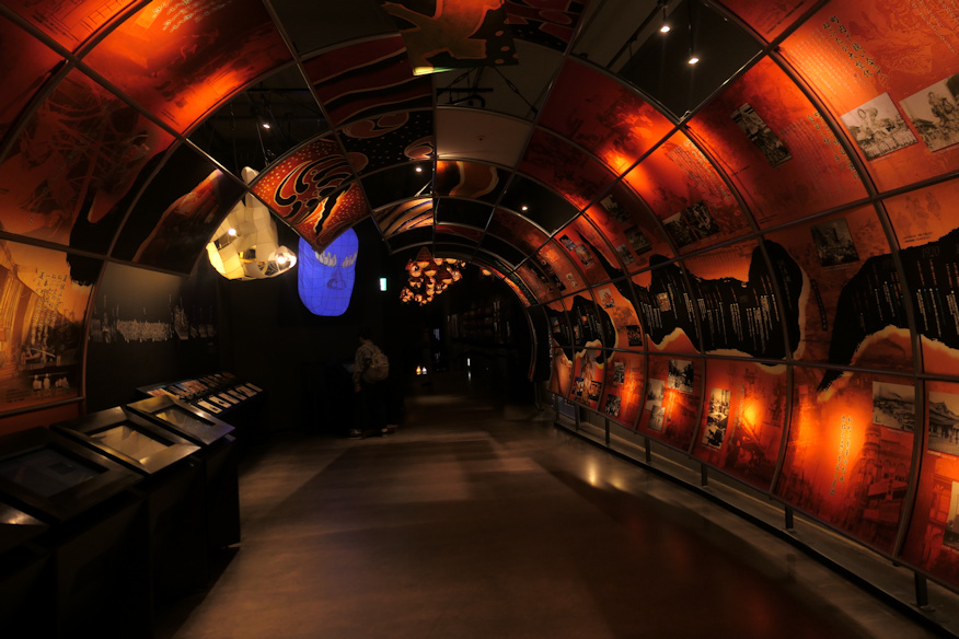 ![]() 入り口には人形による山車の模型が。オープンカーで先導するのね。 ![]() その先にはタイムトンネルが。三内丸山遺跡といい、青森の皆さんこの構造がよほど好きなのね。 ![]() そこの解説板を見て驚く。こんなにあるんだ、青森県内のねぶた祭り。青森と弘前だけだと思ってました。ただ解説文に「南部地方を除く広い地域」とあるのは無駄に対立煽ってないですか?弘前地方を中心に、でいいんじゃ無いですか。そもそも、むつ市は南部側でしょ。 個人的には単純に新参の青森が「ねぶた」、古くからの弘前が「ねぷた」と思っていたんですが、両者が名乗りを明確に分けたのは戦後になってから、せいぜいこの七十年だと帰宅後に調べて知る。元々はどっちの発音もごちゃまぜに使われていたようです。ついでに柳田邦男さんなどは「ねぶた」を「眠らず」を語源とする名称、すなわち寝ないで過ごす庚申信仰の東北版が語源としていたと記憶しますが、誤りでしょう。どう見たって庚申信仰に繋がる祭りじゃないでしょ、これ。弘前弁に濁音と半濁音の区別がどこまであるのか不勉強にして知らんのですがアイヌ語じゃないかなあ。実際、地元の研究者の方もそう指摘してるの見ましたし。ネプ、ネプカでSomething、忌言葉(死者に関するものだと思う)を避ける隠語でしょう。 ちなみに歴史的には江戸中期より先には遡れないようで、やはり弘前藩がその設立に主要な役割を果たしたようです。 ![]() タイムトンネルの先はこんな感じ。なんかステキ。 ![]() その先からねぶたの山車の展示が始まります。なんか不定形で「宇宙から来た不安と希望」みたいな抽象作品だろうか、と思ったんですが、これは裏側なのでした。裏表あるのね。 |