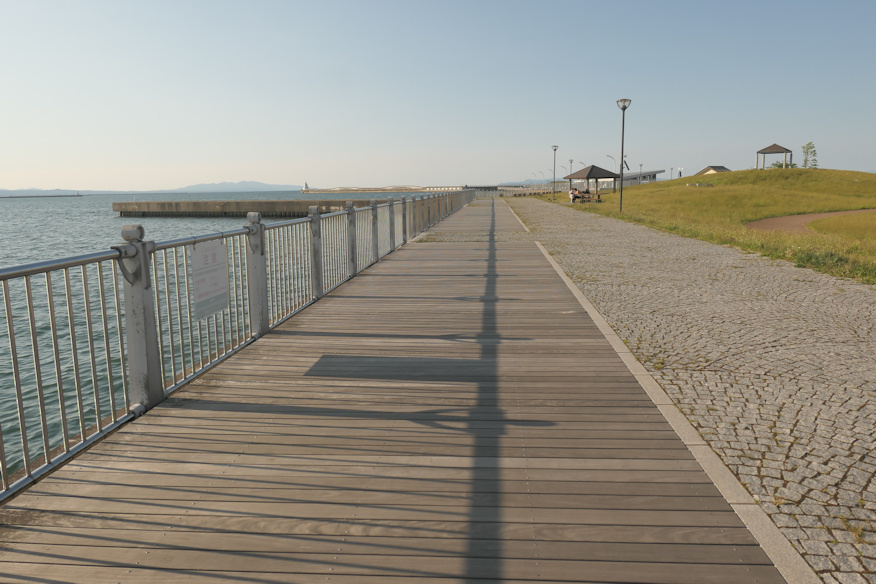 では散策を続けましょう。とりあえず港の方に戻って来たようです。キレイに整備されてました。向こうに見えているのは桟橋兼堤防で、青函連絡船から見えてた奴ですね。歩けるようなので行って見ましょう。 ![]() でもってこの物産館の下に多数のテント式の建物がありにけり。なんだろうと思ったんですが、正解は後ほど。 ![]() 一帯はかなりキレイに整備されており、散歩したりランニングしたりする人を多数見かけました。 ![]() 恐らく元は噴水だったんじゃないかなあ、もう飽きちゃって水止めちゃったんじゃないかなあ、という設備。彫像はアシカですかね。でもってここにあった看板で、この辺りが青い海公園だと知る。 ![]() 桟橋部分の一部は例のボードウォークです。腐るよ、これ。 |