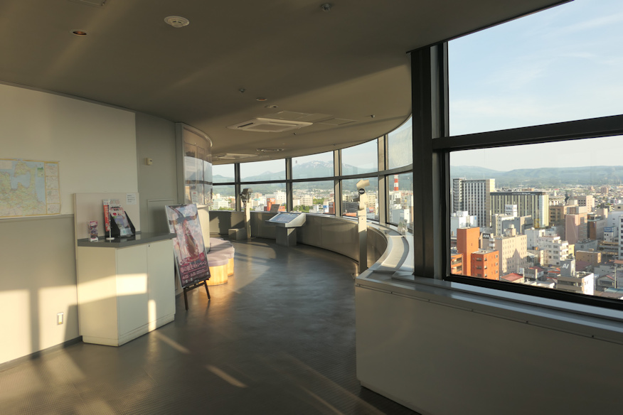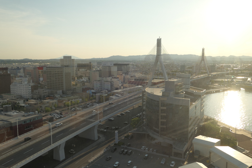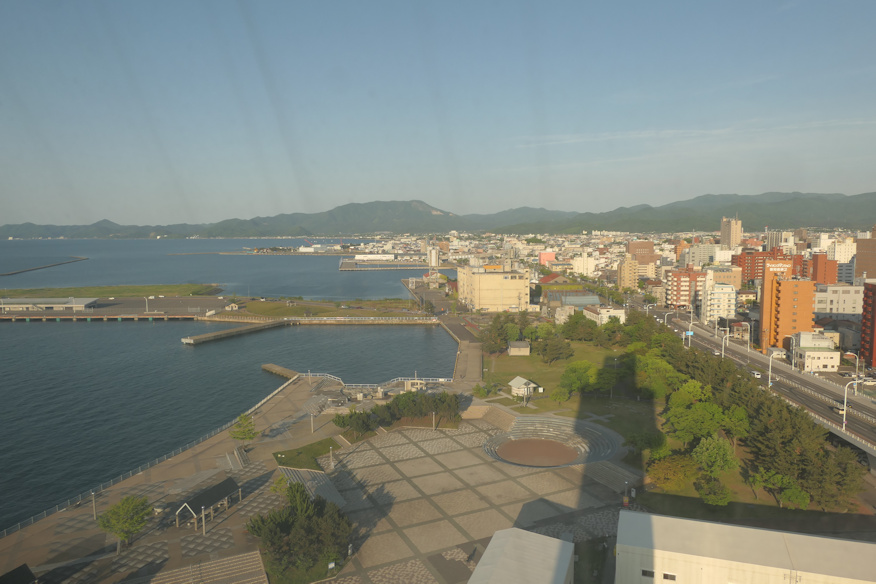 ![]() こちらが展望台。ちなみに有料で500円でした。あ、この円盤状の形、外から見た時、建物から出っ張っていた部分だ。展望台だったのね。 ![]() そこから南東方向に大きな山が見える。弘前の方だよなと思って展望台の案内を見たら岩木山でした。…すみません、この日この時この瞬間まで、筆者は岩木山、岩手県か宮城県にあるんだと思い込んでました、いやだって音的に両者の県境とかにありそうでしょ。ちなみに標高は1624m程ですがどこからでも良く見え、翌日はあらゆる場所からこの山を愛でる事になります。というかこうしてみると青森県、意外に平地多いな。 ![]() 八甲田山もバッチリ。ちなみに八ヶ岳と同じく複数の頂の集合体が「八甲田山」を名乗っている一種の山脈です。そして「八」も単にたくさんの峰、という意味であり、八つの山頂があるわけでは無いのも八ヶ岳と一緒。よって八甲田山という単体の山頂は存在しません。その標高とされる1584mは大岳のもの。あの山容で1584mというのも驚きで、若いころ聞いた日本の山は北に行くほど大きく見える説、納得だなあと思う。首都圏で言えば奥多摩や秩父の山より低いのです。 でもって山の横をかすめるようにして飛ぶ飛行機を見て驚いたのですが、後で調べて見たら青森空港、あの山の横に在るのね。結構、凄い場所だと思うんですが、貴重な平野部を潰すわけにもいかぬのか。ちなみに八甲田の田は恐らく田代、湿原を指す言葉で、尾瀬一帯だけでなく、かなり広い東北の一帯でこの言葉は使われていた見たいです。 ついでにここから山頂まで僅か20qしかなく、あの有名な歩兵第5連隊の遭難事件で知られる山、こんなに人里に近いのとかと驚く。ちなみにこれを山岳遭難に分類すると世界最大の死者数を出したものになるんですが、そもそも山頂を目指して無いし(麓の温泉地帯を目指していた)、その麓の600m前後の標高の一帯で遭難しているので、山岳遭難に入れるのはどうかな、と思いますが。 ついでに山登りの人間には火山性ガスの怖さで知られ、窪地で中毒死する事故が複数起きています。一度は入ってみたい山の一つなんですけどね(夏山限定)。 ![]() 東側。奥に見えているのは夏泊半島。その内側が青森湾となります。 ![]() そこからもっと海側を見る。先ほど歩いて来たフェリーターミナルの桟橋とその先の防波堤。実は結構な距離あるんですよ。 ![]() 水平線上に見えているのは北海道…ではなく下北半島。その下が陸奥湾です。ここから半島まで35qほどあり、すでにこの高さ(51m)から見ても水平線の向こうなのでした。 ![]() 市内中心部方向。右の橋は例の青森ベイブリッジ、左手の一番高いビルの右下辺りが青森駅となります。この写真では切れてしまっている右側の海上に青函連絡船があります。 |