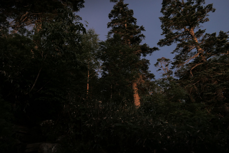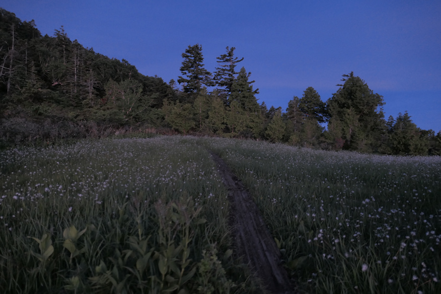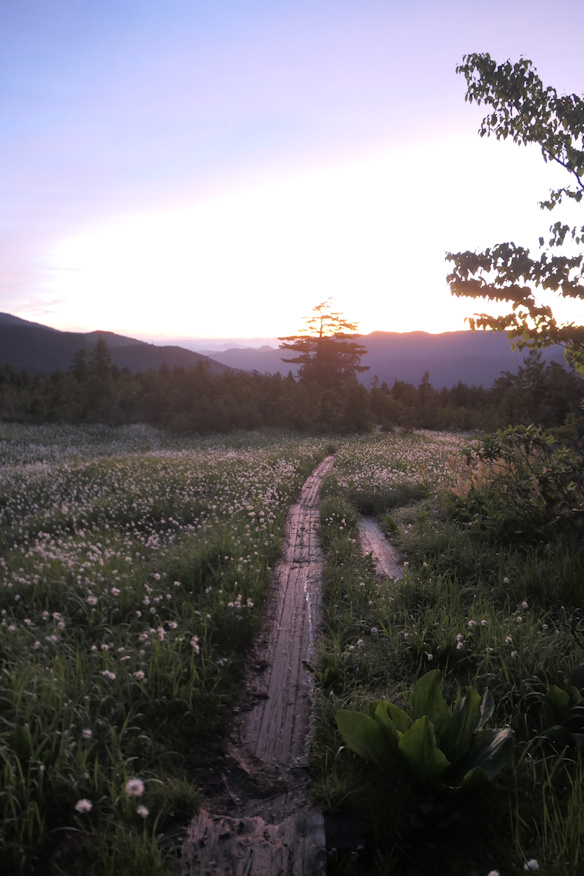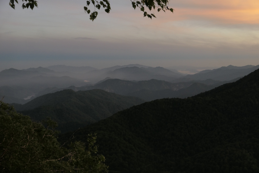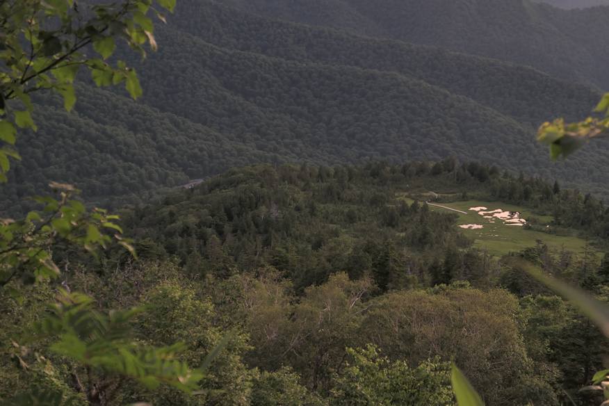 ![]() 広沢の田代を抜けるころには、完全に明るくなっていました。 ![]() さよなら、広沢の田代。朝の光の中のその光景は、なんとも美しかったです。ああ、世界はステキだ、これからは真人間として清く正しく生きようと思ったんですが、二時間後には忘れてました。 ![]() では再度森林地帯へ。でもってここからが登坂地獄その1で、次の田代、熊沢田代まで高度差200mを、わずか500mの距離で一気に稼ぐ形に成ります。ほぼ50階建ての高層ビルを一気に階段で登るような行程です。 ![]() その地獄の逆直滑降の途中で見えた広沢田代の池たち。 ホントに山間に突然、という形であるんですよね。低地でも噴火口でも無い地形でどうして湿地になるんだろう、としばし考えるもよく判らず。ついでにその左手にチラッと見えている灰色の建物がスタート地点の御池ロッジ。直線距離だとまだ2q前後しか離れて無いんで、普通に見えますが、既に1時間40分ほど歩いています。ちなみに高低差は約300m。三角関数を使えばより正確な距離、斜辺の長さが出ますが、まあいいか(手抜き)。 ![]() ここまで高度を上げると、東と北には現地点より高い山が無いので、一気に視界が開けます。気分いいね。 |