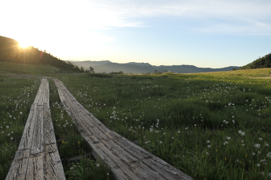 ちょうど尾根筋の向こうから朝日が顔を出しました。さあ、改めて出発ですね。