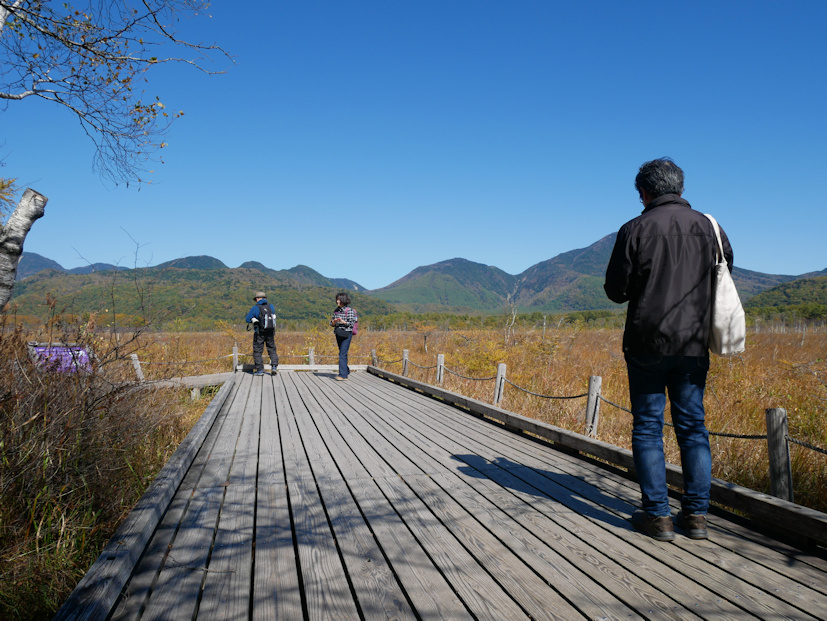 ![]() 湯川、水の色が独特ですが、これは底に生えている水草の色です。透明性が高い水ですが、火山性の土地で酸性度が高いのか、魚は見ませんでした。いやでも、以前、湯ノ湖の横の源泉地帯の温水の中にも魚いたからなあ。どっかに隠れている? ![]() その先で次の展望台に出る。ちなみに戦場ヶ原の「展望台」はこういった原の横に出る場所の事で、高い展望が聞く場所、という意味ではありませぬ。ちなみに右手で熱心に筆者の写真撮影の妨害をしているのがダメ人間兼コック。 ![]() ここからだと男体山が良く見えます。この角度だと富士山型の典型的な火山に見えますが、この山は見る角度でかなり形が変わるのです。 ![]() ちょっと望遠で。この西側側面はそれほど崩壊しておらず、火口も原型を留めていますね。ちなみに一見すると山頂が見えてると思っちゃいますが、既に見たように頂上は右手の火口の端に隠れてしまっており、ここからでは見えません。 ![]() 湿原一帯は紅葉と言うか黄色くなっており、それなりにキレイでした。思ったより楽しいな、ここ。 とりえず動画でも見て置きませう。 |