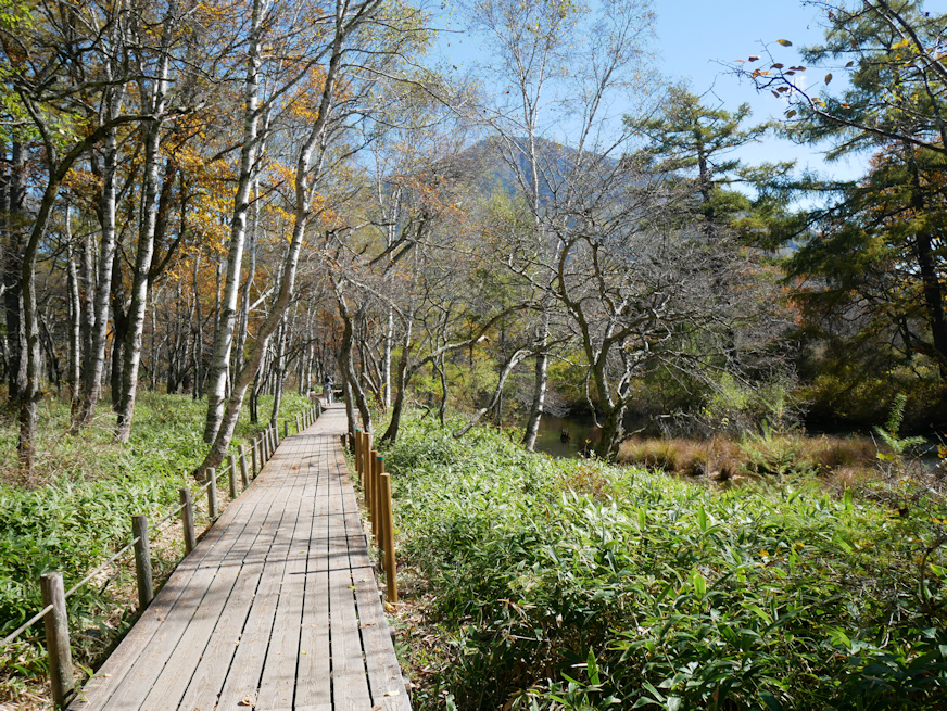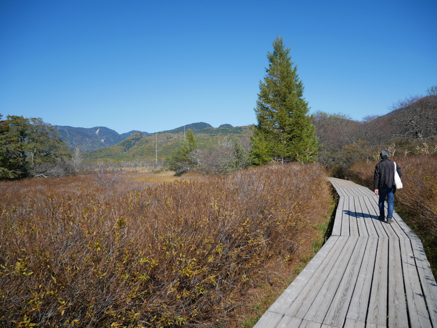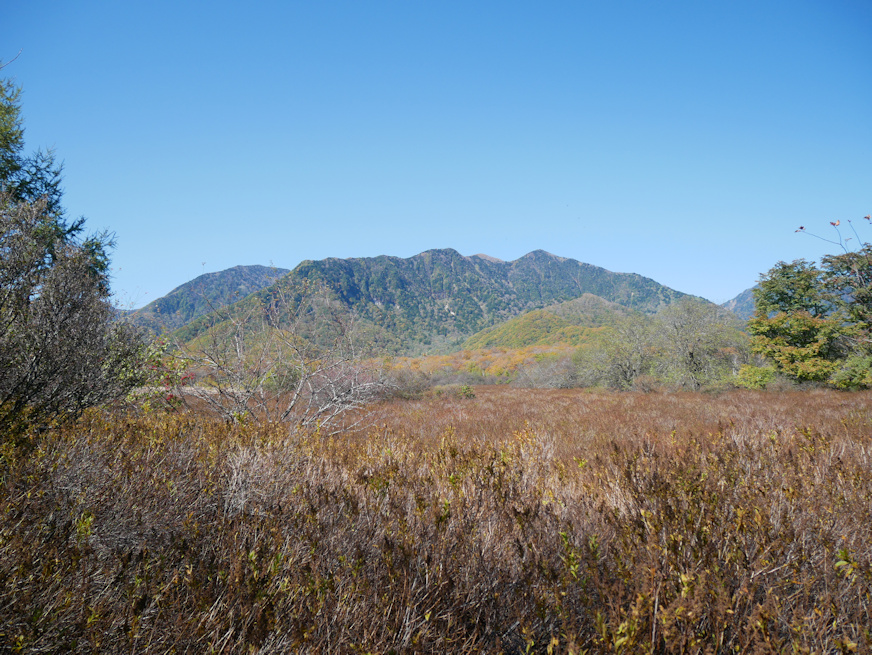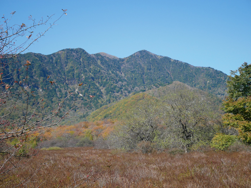 ![]() 再度、湯川の畔に出ました。右手を流れているように見えるのは振り返りながら後方を撮影しているから。樹林の向こうに見えるのは男体山。 ![]() その先で日光白根山方面が見えて来ました。でもって戦場ヶ原からも白根山が見えると思ってたんですが、いやこれ手前の山、外山と前白根山(2373m)だな。あれま、見えないんだ、日光白根。ちなみに尾根筋が切れる右端の凹部が群馬側に抜ける金精(こんせい)峠。首都圏の人間の感覚だと日光から群馬に行くとかちょっと理解できない展開なんですが、群馬県、北東部が妙に長くて、尾瀬も湿原の大半は群馬県領内だし、沼も南半分は群馬県なんですよね。ちなみに利根川の源流までギリギリ群馬県。 ![]() やや望遠で。手前が外山と呼ばれる尾根筋。その中央の凹部の奥に在るのが多分、前白根山。両脇の外山の尾根筋より低く見えるのは位置関係と距離のまやかしで、この一帯では前白根が一番高い位置に在ります。この辺り、下から見るとどこが一番高いかは判りにくく、測量地図なんて無い時代は登って周囲を見て初めて一帯の最高峰がどれか判る、という世界だったでしょう。修験道時代の山岳信仰で登山技術が発展したのは(その技術は現在にはほとんど残されて無いが)、とにかく登ってみないと判らんから、という面があったんじゃないかなあ、と思っています。一番高い山じゃないとご神体にはふさわしく無いですからね。 ついでに手前の小山は恐らく溶岩流で、戦場ヶ原には男体山だけでなく日光白根方面からも土砂と溶岩、流れ込んでるような。湯川を塞いだのは男体山側の溶岩でしょうが、この一帯の湿原化には白根山も一定の役割果たしてるようにも思われまする。 ![]() 男体山側を見る。この辺りは湿原内も樹木が多く、もしかすると例の入植計画中に植林が行われた場所かも。 ![]() ホントに気持ちのいい天気でした。そして筆者の芸術活動妨害のため積極的に視界に入って来るダメ人間兼コック。 |